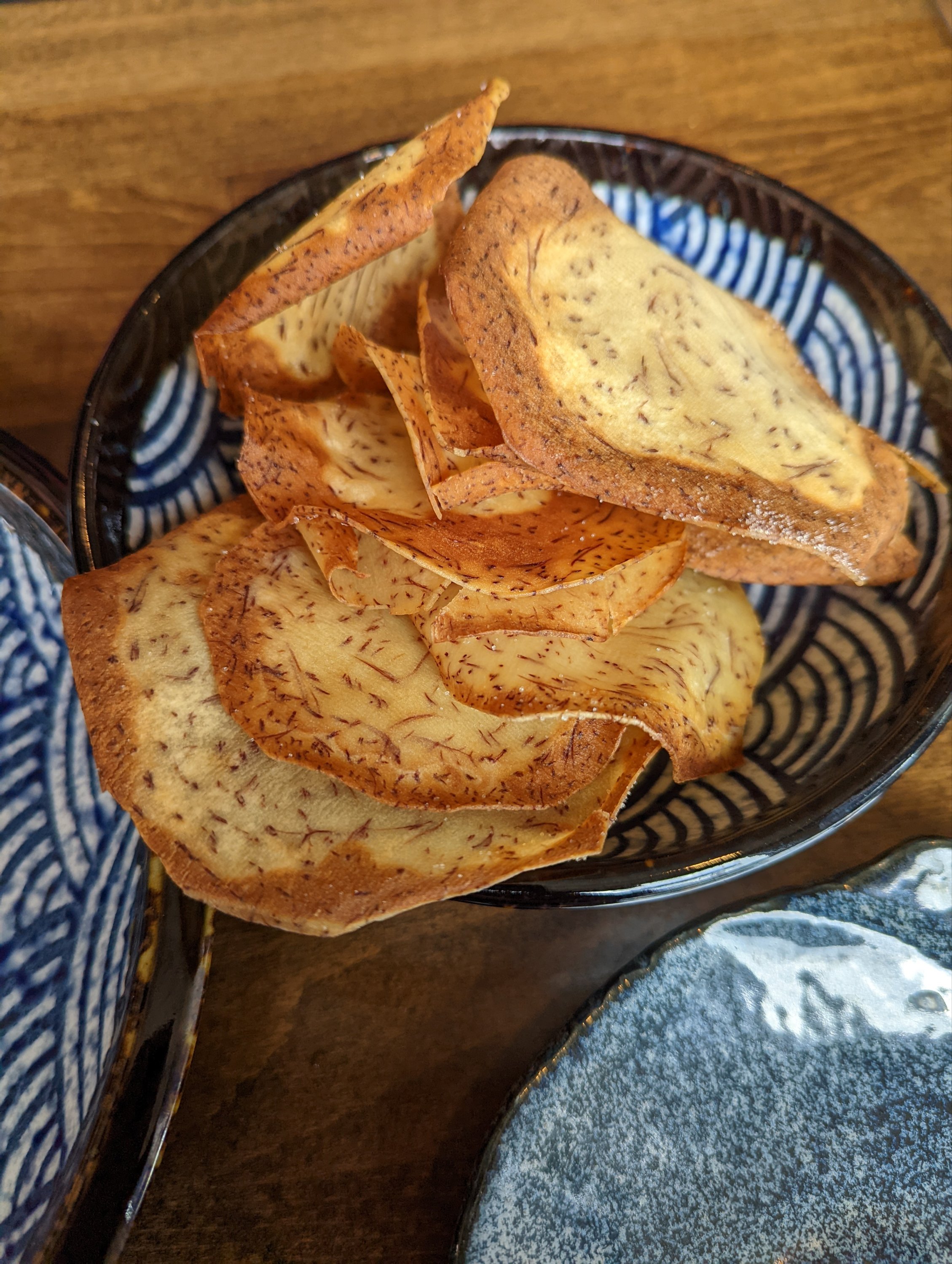 The tartar was extremely unique, the beef and vegetables were a perfect brunoise — I haven’t seen that precision anywhere in Saskatoon recently. I would say in terms of ratio, the dish could have used a bit more beef, but what needs to be talked about was the delightful addition of what I’m fairly confident was chopped octopus! The texture variation was excellent with the addition of the creamy egg yolk, cured meat, and crunchy veggies all served with perfect taro chips, it made for a very interesting experience! Not traditional beef tartare at all! I will admit, I would have liked the beef to be seasoned, I did find myself looking for salt which was exclusively provided by the taro chips. My North American palatte just needed a bit more than that, but I will chalk that up to the fact that our culture loves salt and probably anyone else would have found the dish balanced.