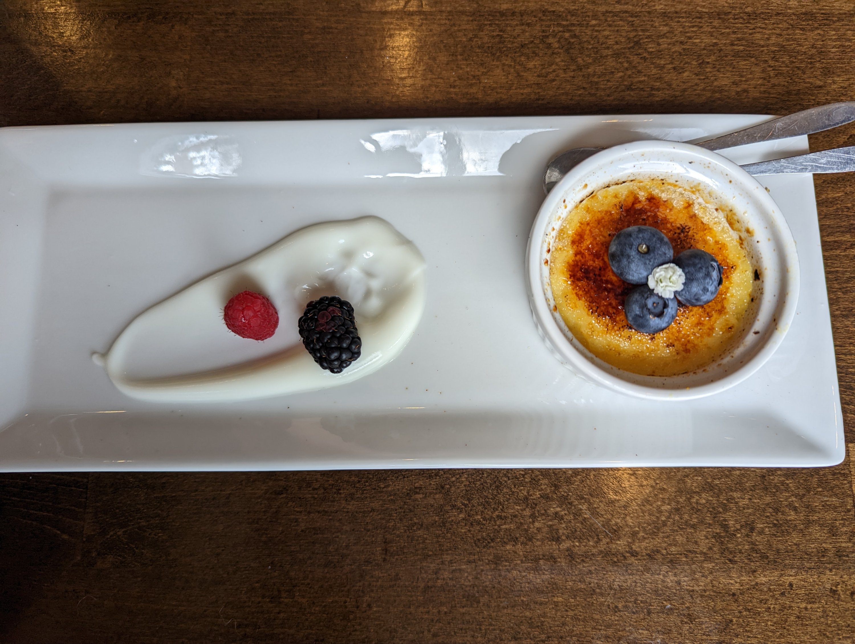 For my birthday, I did get the dessert for free. It was a creme brulee. This stood out as odd to me based on the type of restaurant, and honestly, it wasn’t a show stopper. Unfortunately, the cream/eggs had cooked a bit too much and the texture was off, though it had a great crunchy top (properly torched) and the flavour was spot on. Perhaps they’ll have more Japanese offerings in the future.